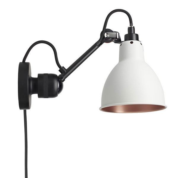 DCW Editions Lampe Gras N304CA Væglampe Rund m. Ledning H: 14cm - Sort/Hvid/Kobber