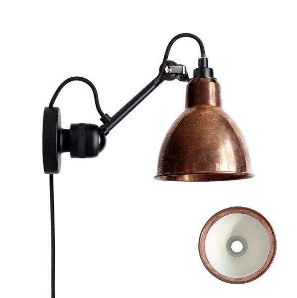 DCW Editions Lampe Gras N304CA Væglampe Rund m. Ledning H: 14cm - Sort/Hvid/KobberLampe Gras N°304 væglampen har et industrielt udseende med et tidløst design.