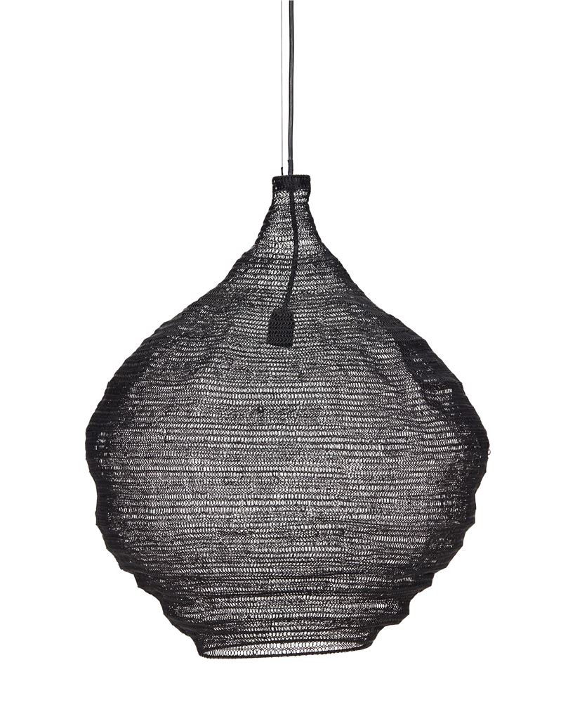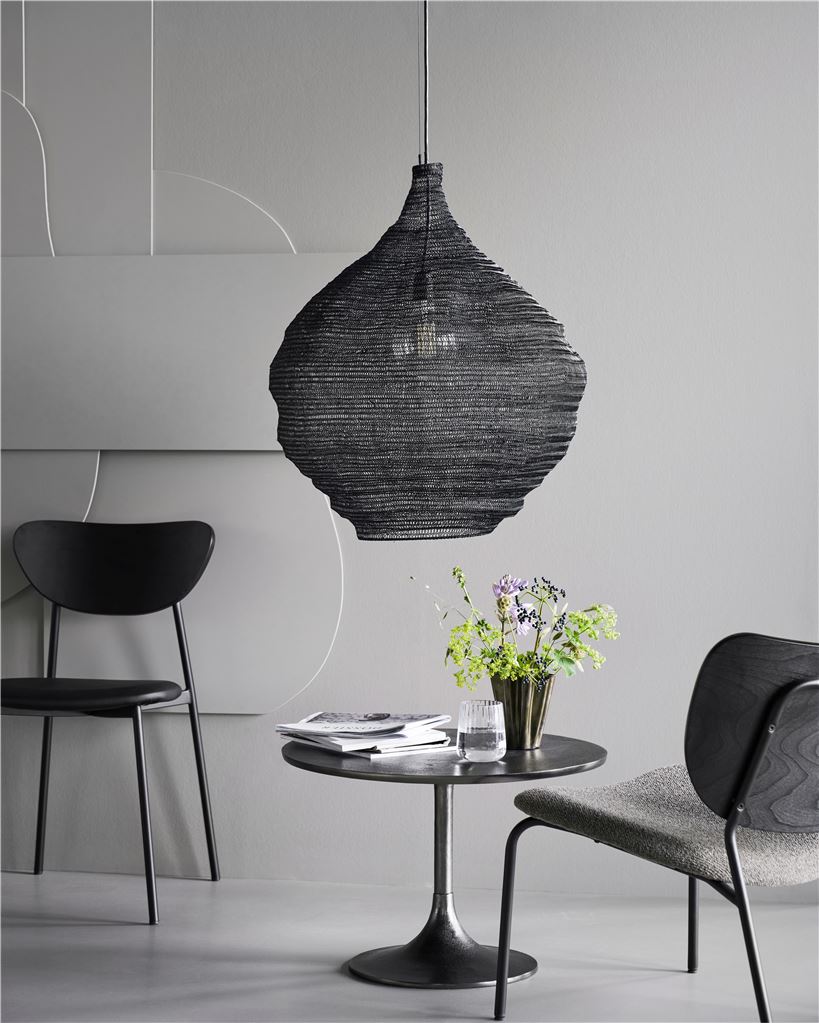 Denne store pendel i sort mesh-materiale lader lyset skinne igennem og skaber en indbydende stemning. På trods af det industrielle look passer det alsidige design til enhver stil, fra boho til moderne og minimalistisk. Hæng denne pendel fra House Doctor over spisebordet, i et hjørne af stuen eller i entreen for at tilføje et dejligt, varmt lys. Når du har pakket lampen ud, kan du nemt justere og rette dens form.