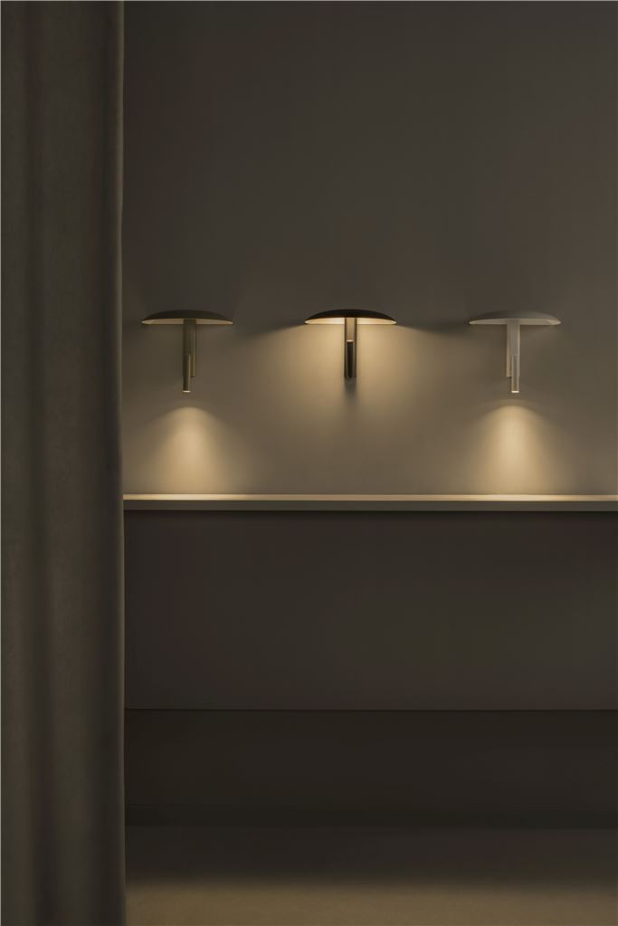 Designerne bag Konoha, George Yabu og Glenn Pushelberg, har skabt en lampe, der kombinerer både direkte og omgivende lys i et stilfuldt og enkelt design. Resultatet er en enkel og diskret væglampe med en skærm, der rummer en retningsbestemt spotlys, som kan dreje 360 grader. Skærmen fungerer som en hat, der dækker spotlyset, så når lyset rettes opad, reflekteres det inden i skærmen og projicerer en blød lysstråle, hvilket giver varm omgivende belysning.