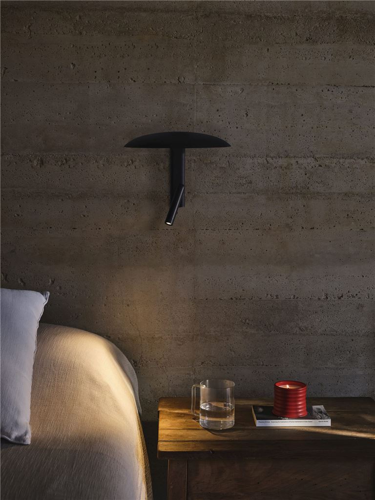 Konoha er en elegant og alsidig væglampe med en unik skærm og en bevægelig lysstråle, der kan drejes 360°. Den er designet til at tjene både som en læselampe i stuen, en sengelampe i soveværelset eller en funktionel belysning i gangen.