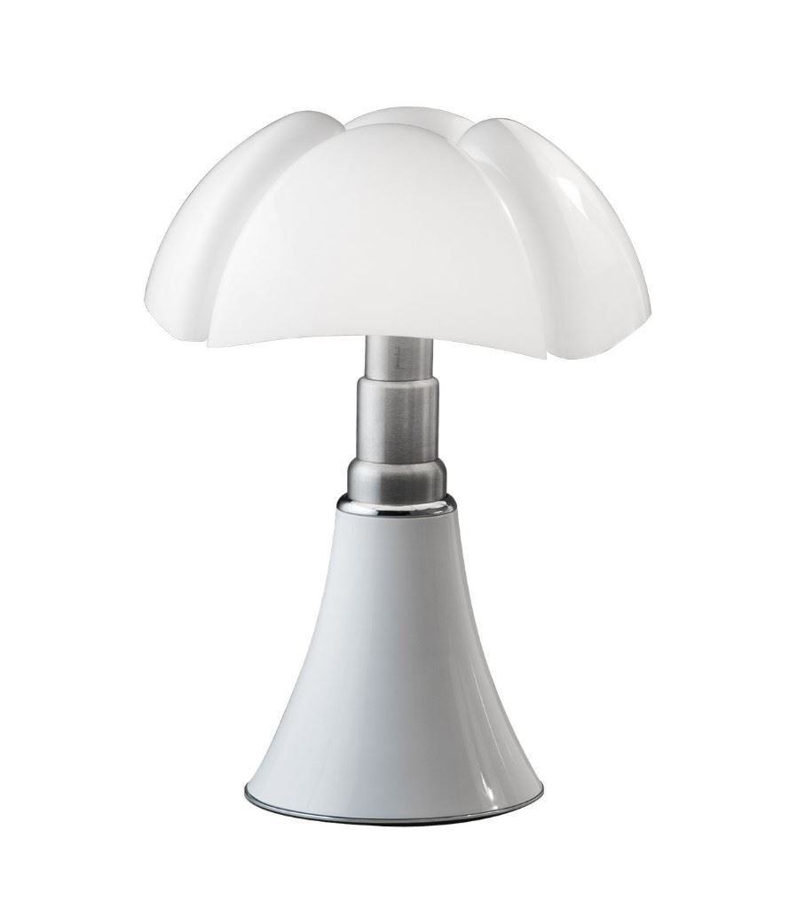 Pipistrello bordlampen er et sandt designikon fra 1965 og har forblevet utroligt populær i mere end 50 år. Lampen har et teleskopsystem i rustfrit stål, der giver mulighed for justering af højden fra 66 til 86 cm, og lampeskærmen er lavet af opal methacrylat. Den unikke støbningsteknik, der blev anvendt til lampens skærm i 1965, var banebrydende og skabte skærmens karakteristiske, vinklede former, der ligner vingerne på en flagermus - hvilket netop betyder "Pipistrello" på italiensk.