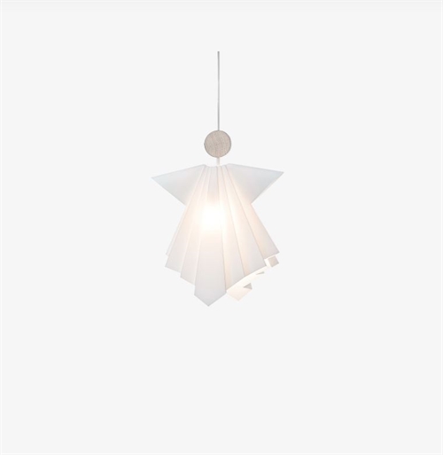 Englene er udført efter de gamle foldeteknikker, i et stramt og enkelt design, og fremstillet i samme kvalitetsmaterialer som vi kender fra de verdenskendte håndfoldede lampeskærme fra LE KLINT.