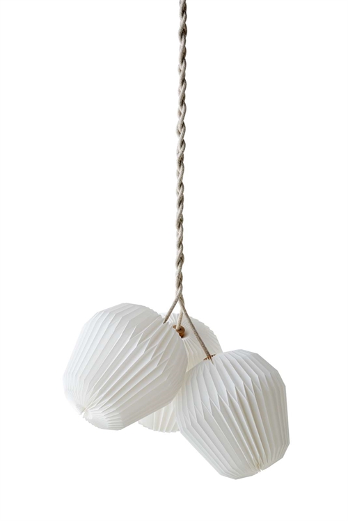 The Bouquet fra LE KLINT er en skøn forening af skarpe plisséer og flettet rustikt hørtekstil, hvor egetræsdetaljen i toppen fuldender det nordiske udtryk. Formsproget i lampeskærmene er inspireret af, hvordan tulipanhovedet ser ud, når tulipanen står i sin lige akkurat udsprungne form. Som et fint modspil til de præcist foldede og skarpe plisséer er ledningerne flettet sammen for at understrege det mere organiske og bløde udtryk. Denne lampe fås også med 1, 5 eller 7 skærme, hvilket gør det muligt at finde en pendel, der passer ind i ethvert hjem.