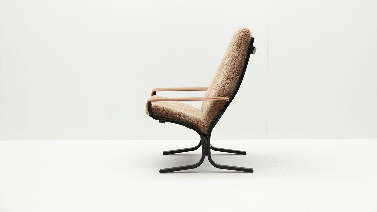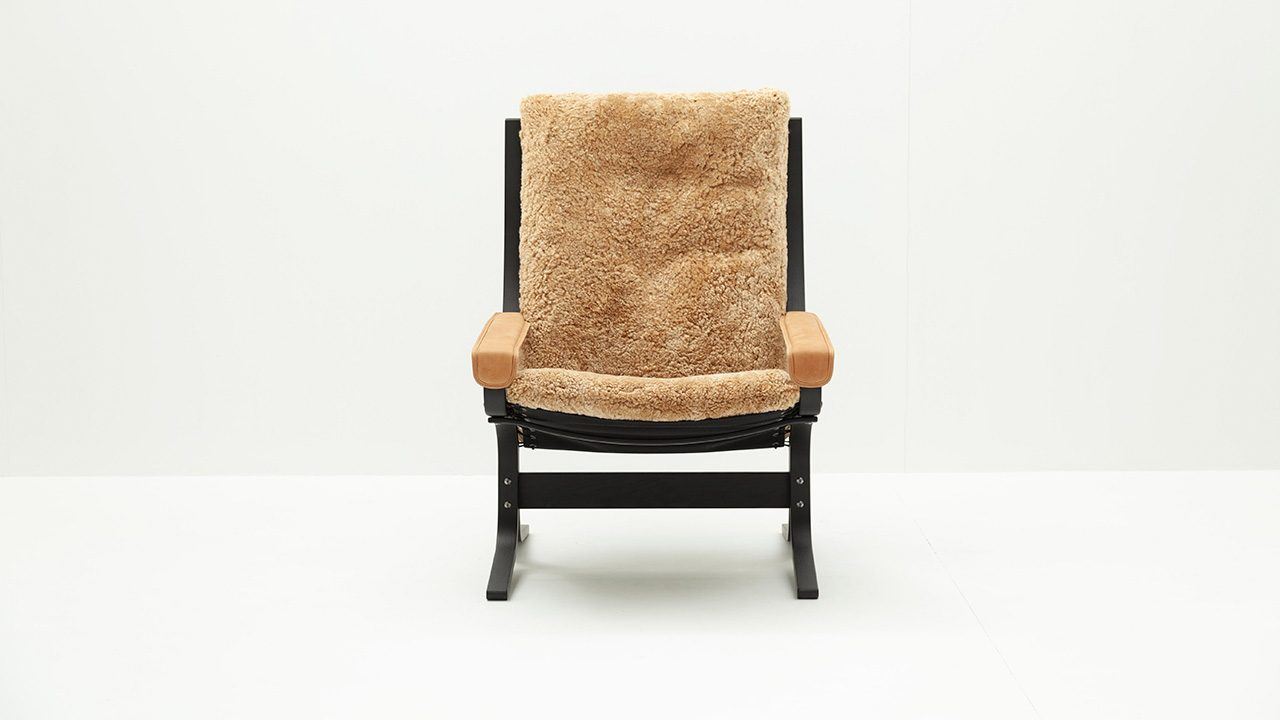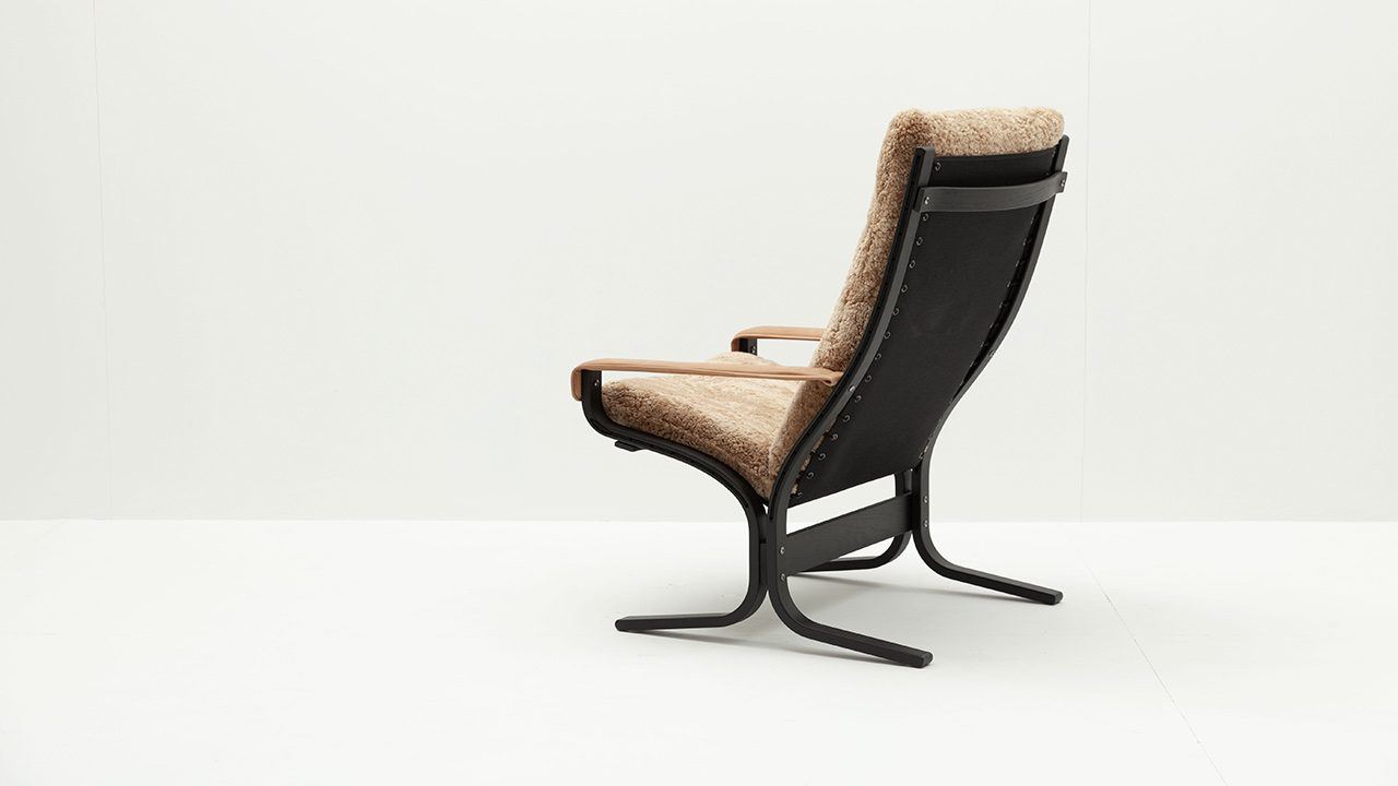 LK Hjelle Siesta Ovis Lænestol Høj Med Armlæn - Black/Sheepskin Maple