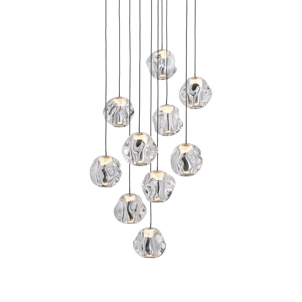 ICE BALL 10 klyngependlen er en imponerende belysningsmulighed til enhver indretning. Med 10 klare akrylskærme med en diameter på Ø 10,5 cm skaber denne klyngependel en unik atmosfære i ethvert rum. Den matte sorte baldakin og ledning bidrager til det moderne udtryk, mens det kromfarvede finish tilføjer et strejf af elegance.