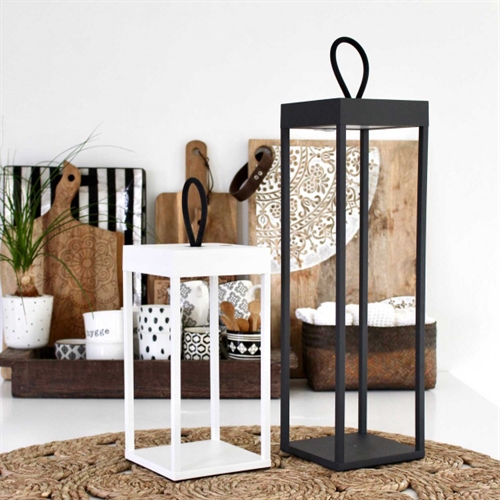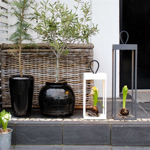 Stil lanternen på terrassen eller ved indgangspartiet og skab en hyggelig stemning, hvad enten lanternen står alene eller i par. Lanternen fås også i sort og også i en udgave der er 50 cm høj.