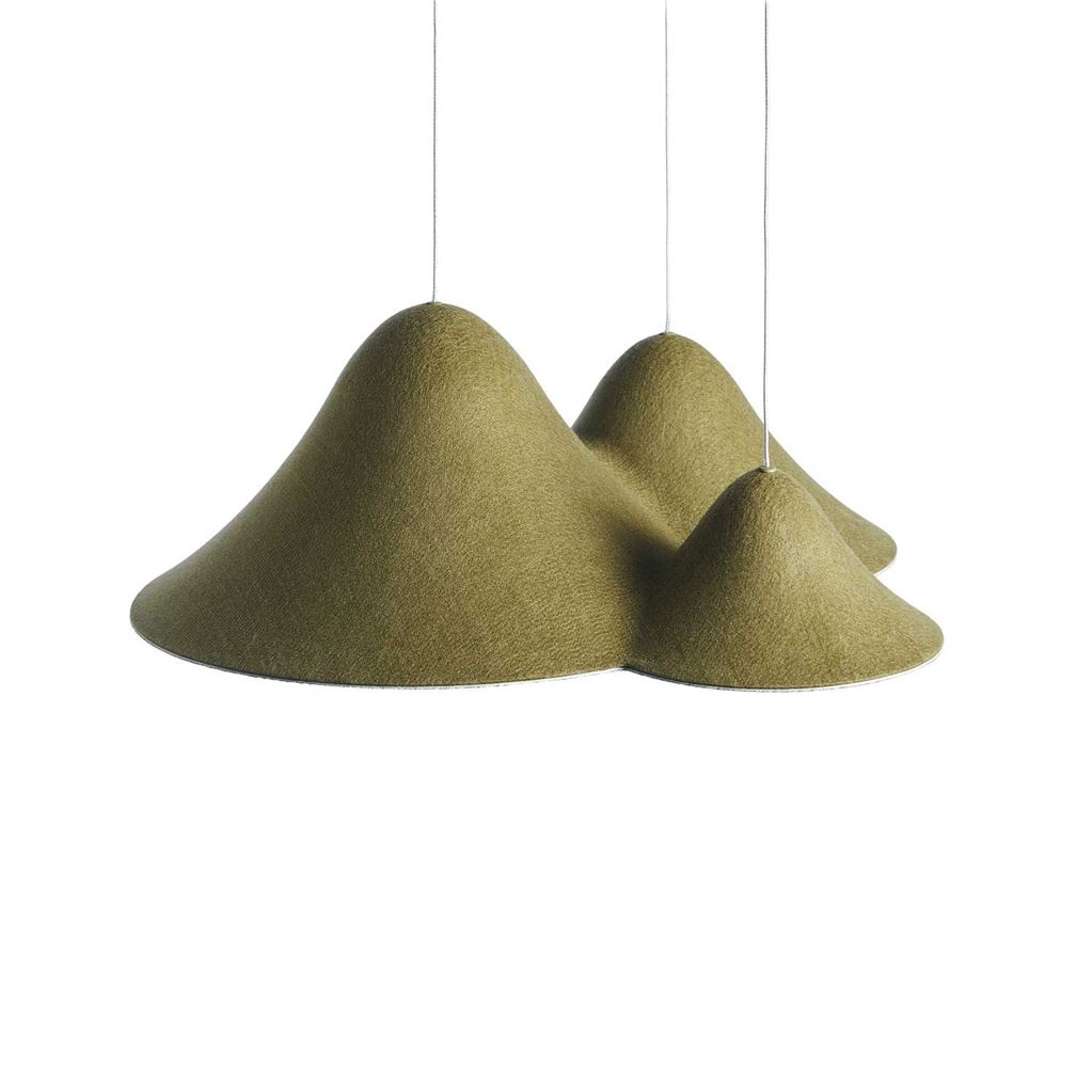 Panorama pendlen fra LOOM Design er en fusion af funktionalitet og æstetik, dette kunstværk fanger naturens skønhed med sin fortryllende grønne overflade og sofistikerede grå indvendige finish. Panorama er inspireret fra de rolige landskaber og ønsket om at bringe naturens harmoni ind i dit hjem. Med sine tre elegant hævede bakker efterligner den naturlige panoramaer og skaber en visuelt fortryllende oplevelse. Lamperne i Panorama serien er omhyggeligt fremstillet af materialer af høj kvalitet som filt, akryl og aluminium. Den indbyggede LED-teknologi giver et varmt lys, perfekt til enhver lejlighed. Lampen fås i flere størrelser og farvekombinationer og Panoramas tilstedeværelse vil forvandle ethvert rum til et levende kunstværk.