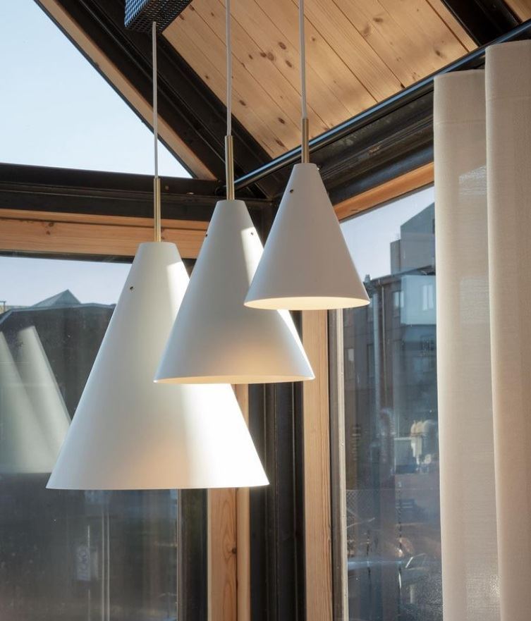 Elegant pendel designet af Bent Karlby. Mosaik er en legende, sofistikeret serie, bestående af gulv-, bord-, væglamper samt pendler i forskellige størrelser. Mosaik kollektionen blev designet af Bent Karlby i 1959, og er et belysningssystem som er baseret på enkelte, geometriske designprincipper. Lampens koniske lampeskærme er forbundet med messingrør og giver et moderne og tidløst look, der på enkelt vis tilføjer en masse detalje til rummet pendlen hænger i. Hæng lampen alene over spisebordet, eller hæng lampen i klaser. Lampen har 3 meter hvid tekstilledning, og er beregnet til indendørs brug. Lyskilde er ikke inkluderet.