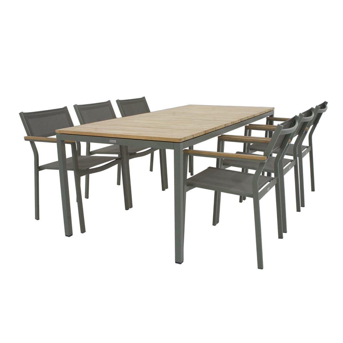 Mandalay Toscana Havebord L: 197 cm og 6 Elba Havestole m. Teak Armlæn - Olivengrøn