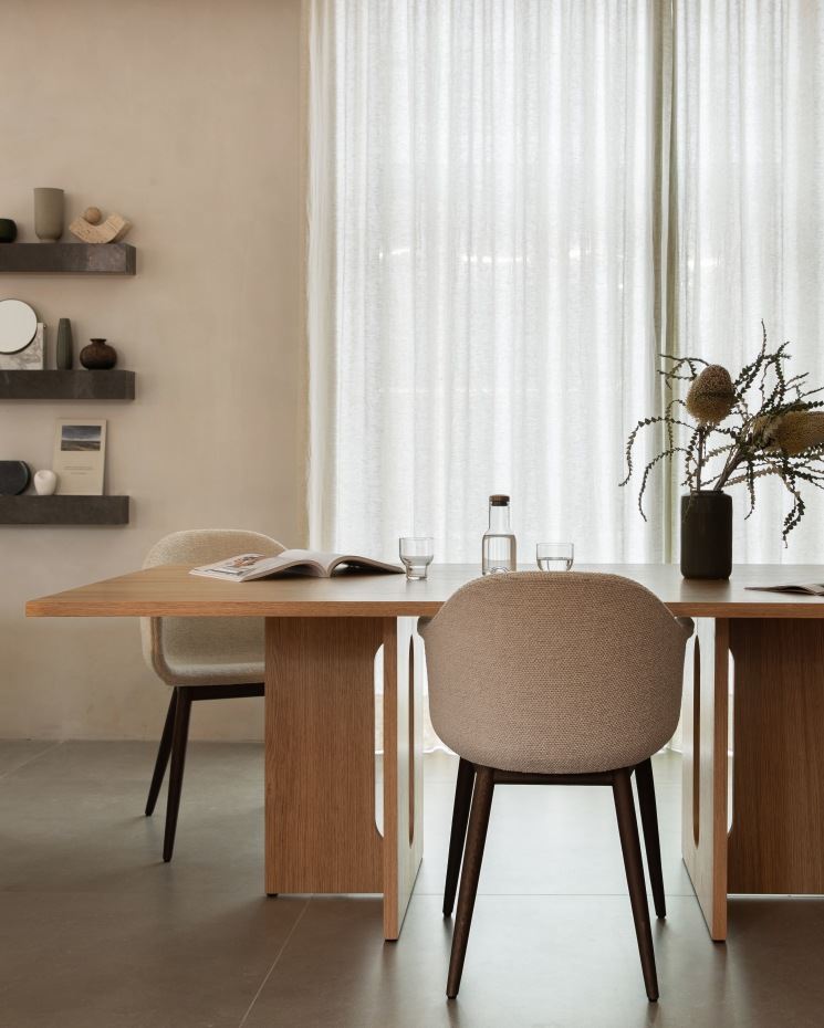 Smukt bord fra Audo. Androgyne bordet fra Audo er designet af af Danielle Siggerud. Det er et bord med et smukt mix af naturlige materialer og skulpturelle former, som skaber en fin blanding af det feminine og maskuline. Det arkitekttegnede møbel består af solidt egetræ. Bordet har en rigtig fin størrelse med plads til 8-10 stole, alt efter behov. Alt i alt et smukt bord som vil tilføje en unik og stilren detalje til indretningen.