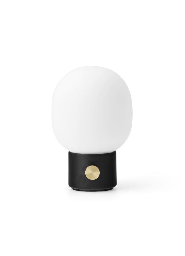 Den klassiske JWDA Bordlampe fra Audo af designeren Jonas Wagell, ses her i en nem og fleksibel trådløs version. JWDA lampen har sin inspiration fra traditionelle olilamper, og er fremstillet i kontrastmaterialer. Det skønne ved JWDA lampen er at den er trådløs, og at den derfor kan tages med overalt. Når lampen er fuldt opladt kan den lyse, med justerbart lys, i 10 timer. Med dens smukke runde glasskærm, og massive metalbase med messingdæmperkontrakt, udtrykker lampen enkelthed og elegance. USB-opladeren er placeret i bunden, og der kan både bruges standardstik, men også Audos opladningskort.