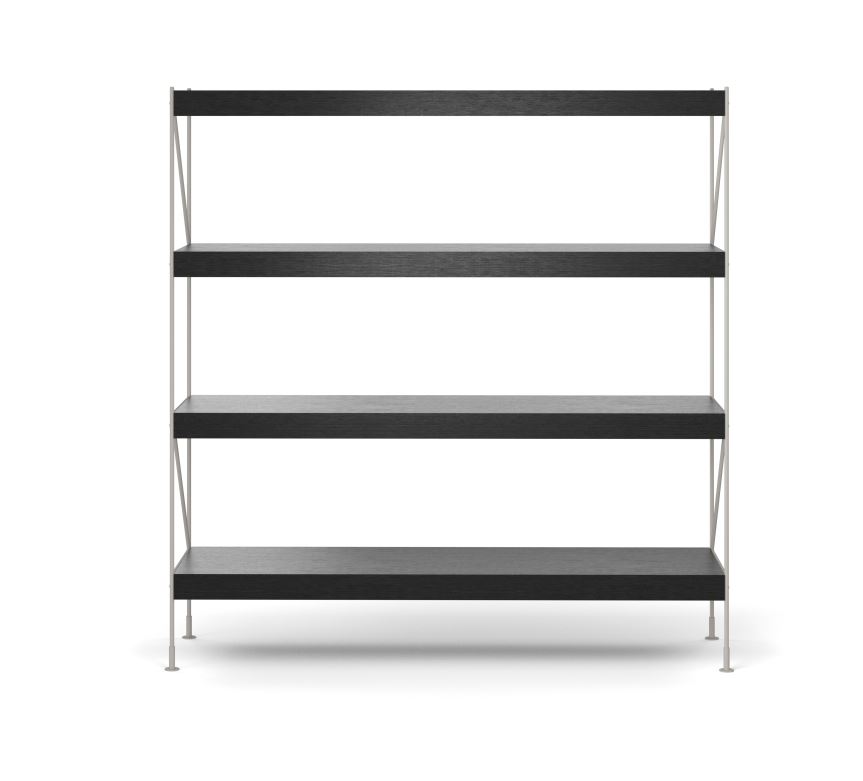 Reolens design er sofistikeret og har et elegant udtryk, der med dens neutrale farve og sine rene linjer tilføjer et smukt udseende og en hjemlig atmosfære. Reolen har 4 hylder i solid, sort egetræ, hvilket er utrolig flot sammen med de industrielle stålben. Reolen er med dens højde ideel at have stående i køkkenet, entreen, kontoret, opholdsstuen eller spisestuen. Brug den til at opbevare dine yndlingsting og udstil dem på fineste vis med Zet storage system.
