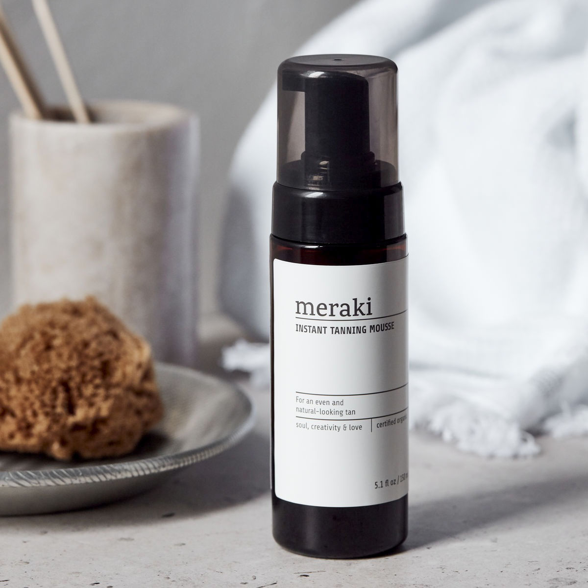 Få øjeblikkeligt en naturlig sommerglød med denne instant selvbrunermousse fra Meraki. Certificeret økologisk og beriget med aloe vera og glycerin, efterlader moussen din hud fugtet, blød og velplejet. Den naturlige karamelfarve skaber straks en solbrun effekt, som udvikler sig til en smuk kulør inden for 2-6 timer. For det bedste resultat anbefales det at eksfoliere huden med en Meraki eksfolieringshandske eller bodyscrub før påføring. Cremen bør anvendes på ekstra tørre områder som albuer og knæ før påføring af moussen med cirkulære bevægelser ved hjælp af Merakis fordelerhandske. Husk at vaske hænder grundigt efter brug, hvis handsken ikke anvendes. Farven falmer gradvist over flere dage, men kan forlænges med ekstra lag. Produktet er COSMOS økologisk certificeret af Ecocert, hvilket sikrer en luksuriøs selvbruneroplevelse med fokus på forkælelse og naturlig pleje.