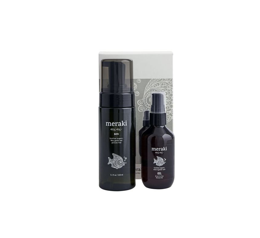 Skøn gaveæske til de mindste fra Meraki. Med denne gaveæske kan du forkæle de mindste og give dem en skøn spa oplevelse. Gaveæsken er fyldt med skønne produkter og er en ideel gaveidé til forældrene, som elsker at forkæle sit barn. Skab kvalitetstid med dit barn og fokuser på pleje og velvære, som i begge kan nyde. Meraki producerer produkter med plejende, nærende og milde ingredienser, som beskytter børns sarte hud. Gaveæskens indhold er derfor nøje udvalgt ud fra plejende og bløde produkter. Derudover er produkterne økologiske, parfumefri, svanemærket og anbefalet af Astma-Allergi Danmark.