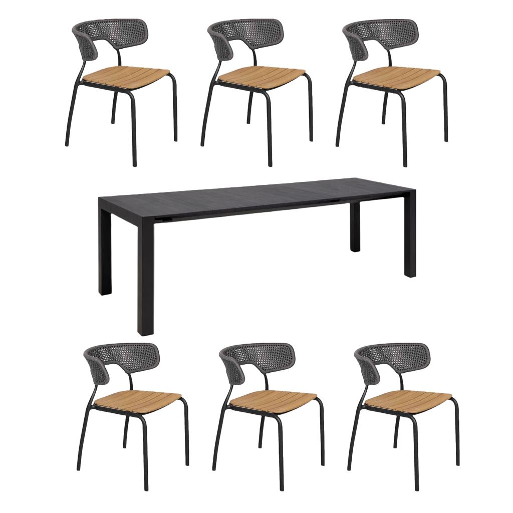 Mindo 111 Dining Table Extension 263x100 cm w. 6 Mindo 101 Chairs - Dark Grey