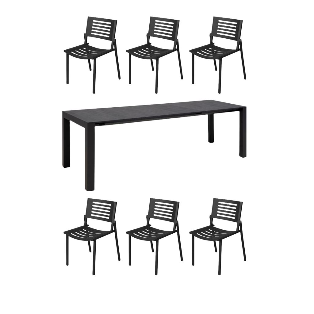 Mindo 111 Dining Table Extension 263x100 cm w. 6 Mindo 112 Chairs - Dark Grey