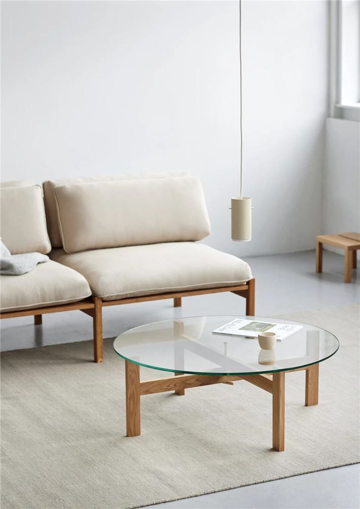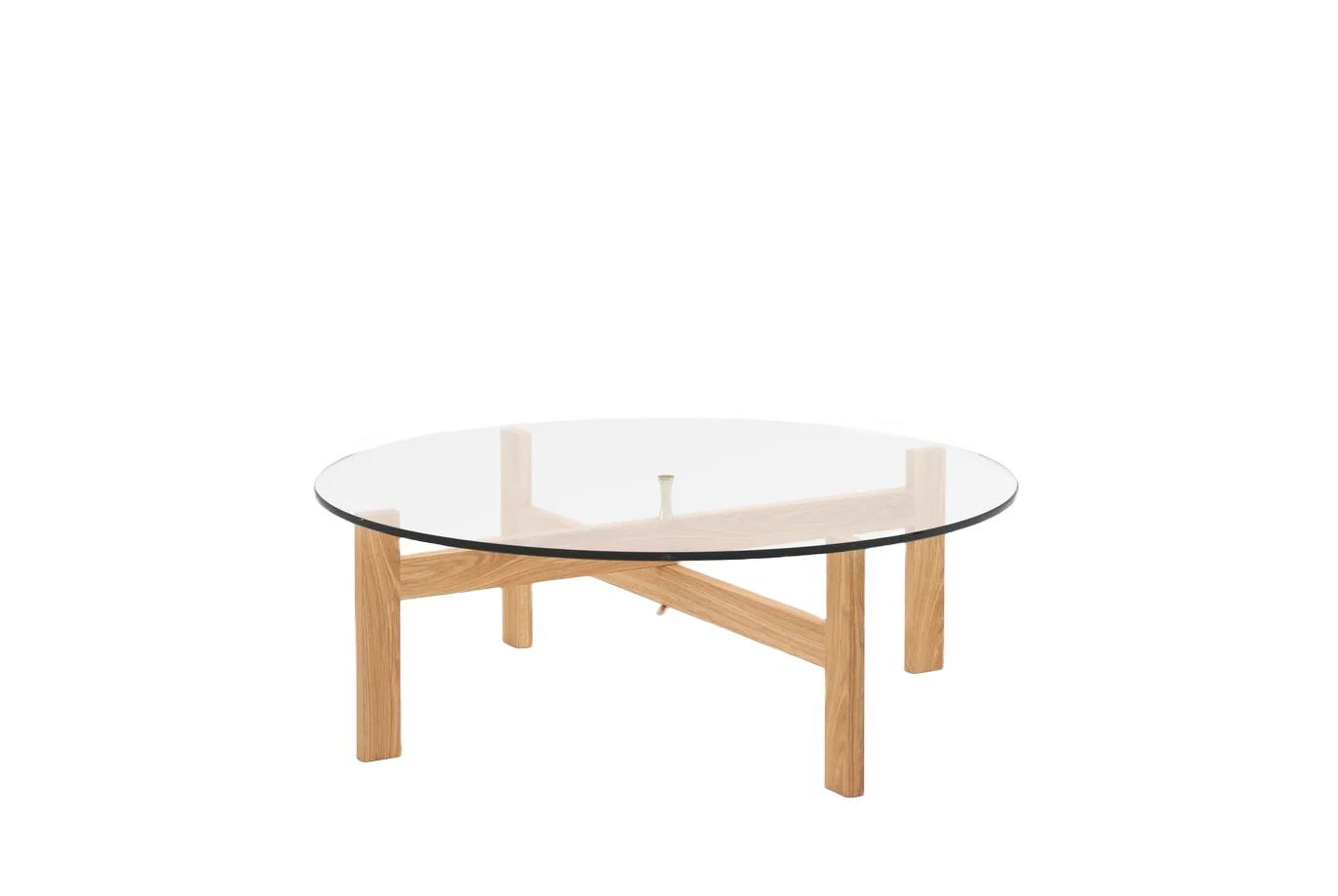 Det smukke runde sofabord fra Moebe har en lav profil med en højde på 30,5 cm. Det har korsformede ben, som er skruet sammen stykke for stykke med og har en flot messing skruemekanisme i midten. Den store runde bordplade af glas sørger for at vise bordet i sin helhed. Bordet har et enkelt men yderst elegant udseende og de flotte messingdetaljer er et frisk afbræk i bordets design. Bordet leveres fladpakket og er let at samle.