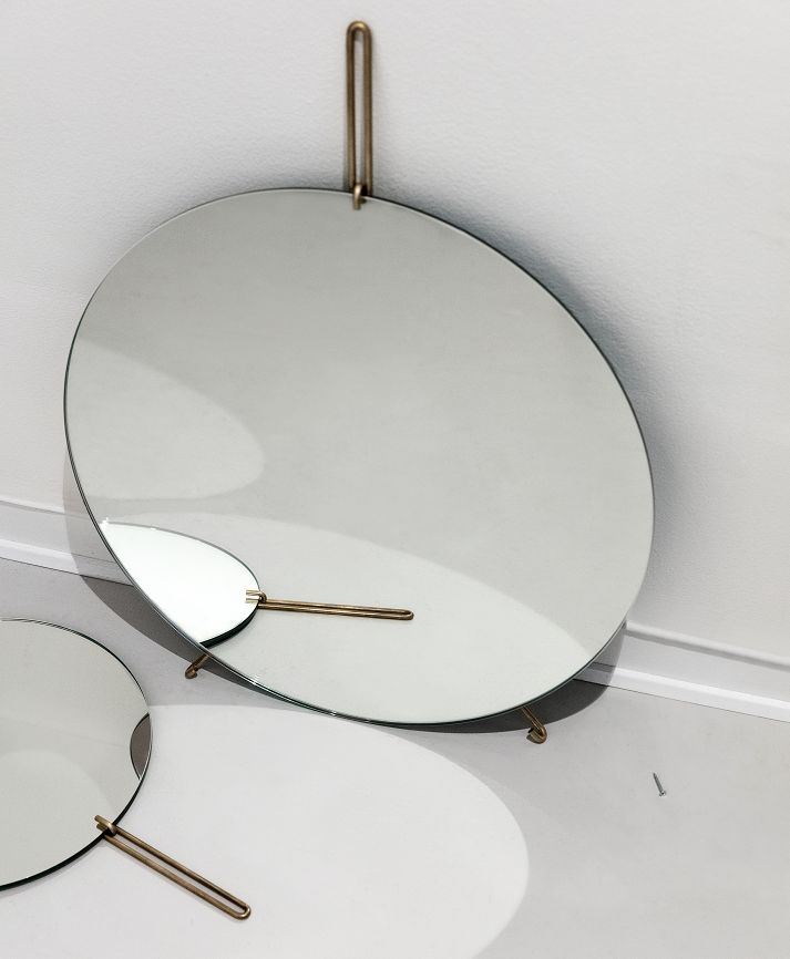 Moebes utrolig smukke spejl, er lavet i et design, hvor der er kræset for de små detaljer og enkeltheden. Spejlet holdes på plads af kun én kraftig wire, som danner et omvendt Y på bagsiden og går op og bliver til ophænget. Spejlet vil pynte smukt i entreen eller i garderoben.