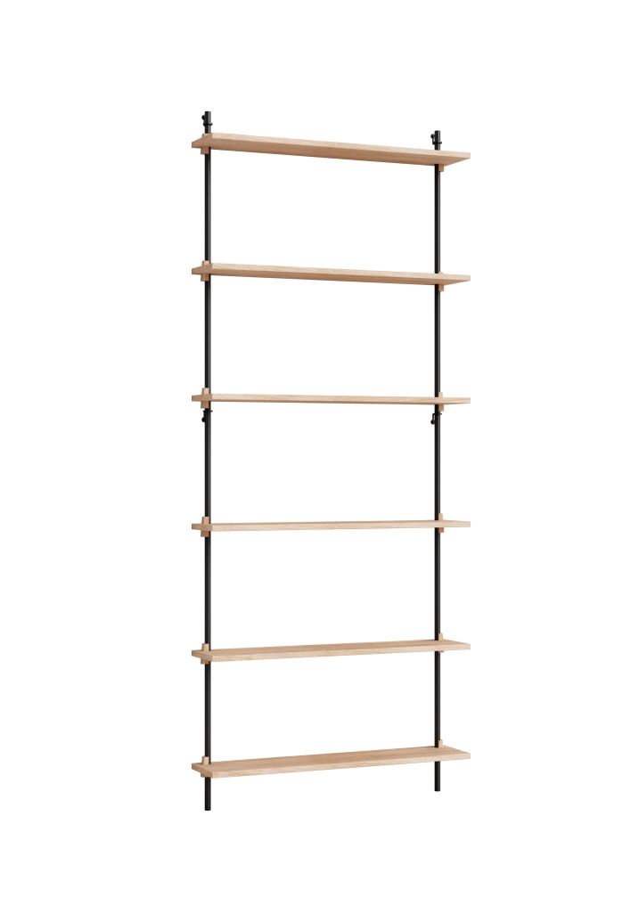 Moebe Wall Shelving Sets 200x85 cm- Oak/Black Smart reol fra Moebe. Et moderne og enkelt reolsystem, hvor det er kun er fantasien, der sætter grænser for kombi Se mere ...