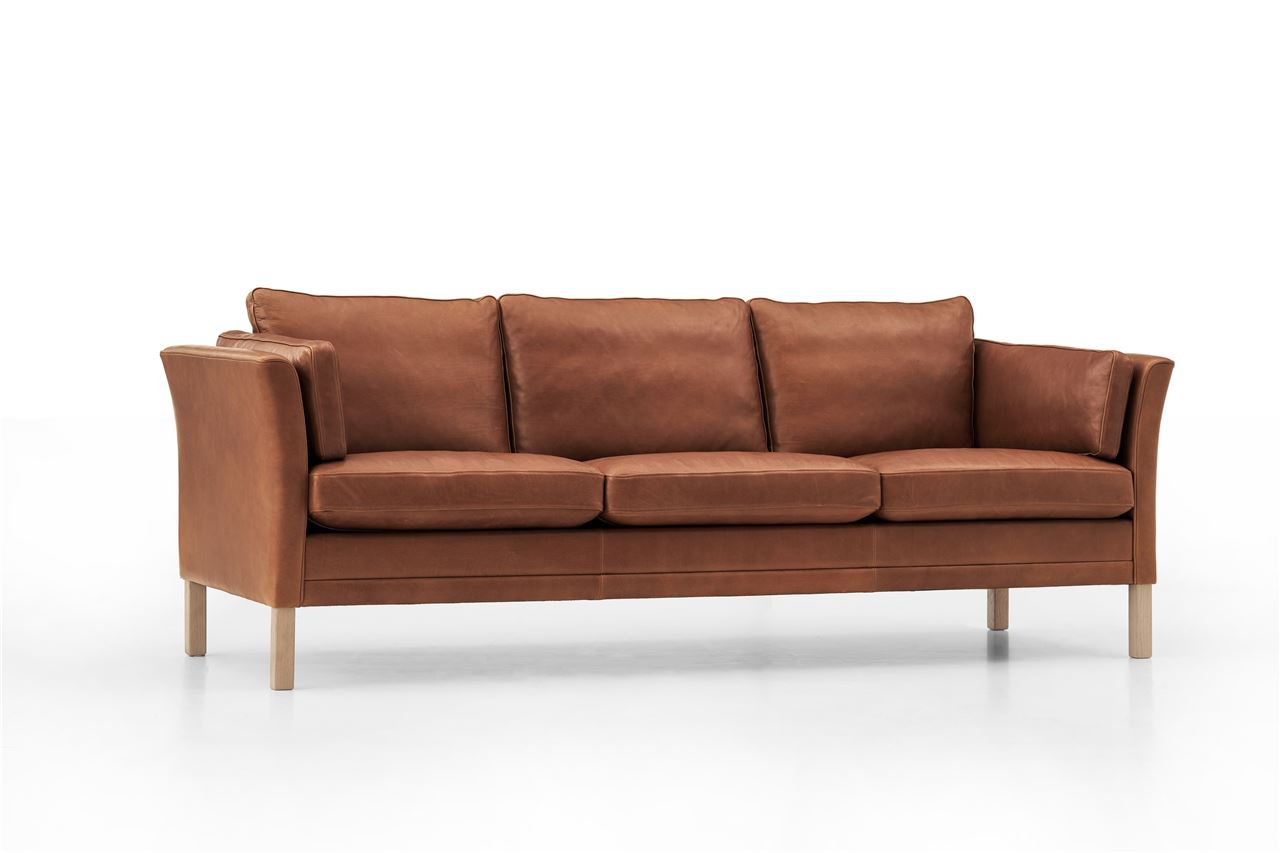 Lækker sofa i klassisk design fra Mogens Hansen. Monteret med duntop sædeindlæg som giver den helt rigtige komfort og det rigtige look. Her kan du nyde at sidde og læse hele formiddagen med en god kop kaffe. Looket er, som Mogens Hansen altid leverer, stilet, enkelt og minimalistisk med en elegance, som vil klæde de fleste stuer. Sofaen bliver produceret på Mogens Hansens egen fabrik i Aarhus, hvor alle komponenter i møbelproduktionen er danskproducerede og lever op til høje miljøstandarder. Med en sofa fra Mogens Hansen investerer du i et stykke dansk møbelhistorie, der pynter i stuen mange år frem.