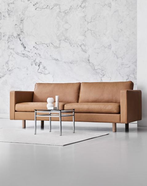 Smuk og tidløs sofa fra Mogens Hansen. Du kan nu få den klassiske MH321 med det ansvarligt producerede Baltique-anilinlæder produceret af svenske Elmo. Det eksklusive naturlæder er yderst åndbart, hvilket giver en behagelig siddekomfort. Naturlæder opnår med tiden en smuk patina, der giver sofaen ekstra karakter og ynde.