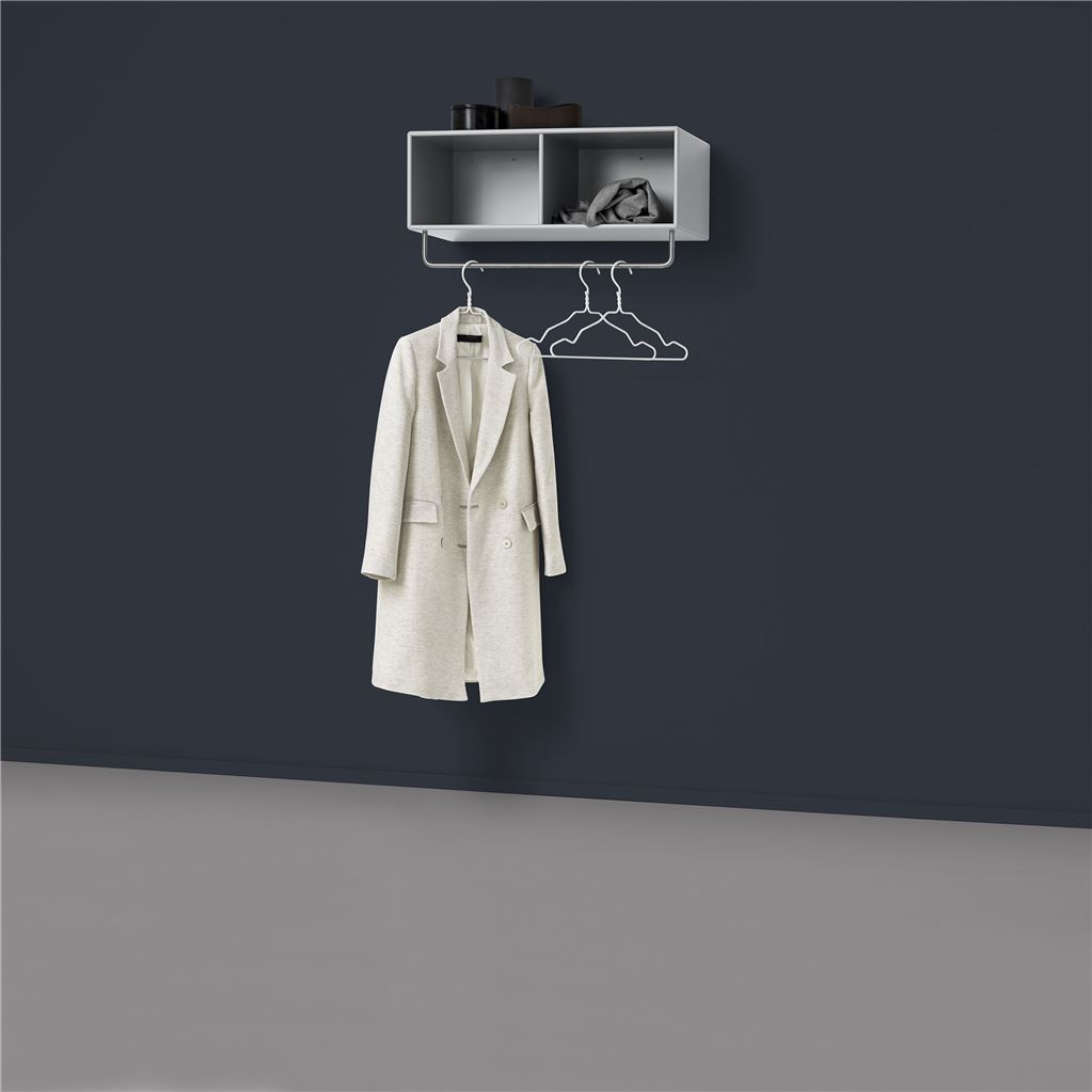 Moderne og praktisk hattehylde fra Montana, designet af Peter J. Lassen. Hattehylden består af to opbevaringsrum og en bøjlestang, hvilket giver mulighed for opbevaring af både overtøj, men også huer, handsker og nøgler. Det enkle design udstråler simplicitet, som passer til de fleste omgivelser. Da hattehylden findes i flere forskellige farver, kan du vælge netop den der passer bedst til din indretning. For at skabe et personligt udtryk, kan du kombinere hattehylden med et Montana skoskab og dermed skabe en opstilling som passer til dine behov. Udover at bruge hattehylden i entréen, kan du naturligvis også bruge denne i soveværelset til opbevaring af accessoires, frakker, skjorter og kjoler.