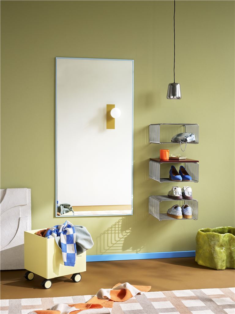 Den simple form og skarpe konstruktion er et meget klassisk eksempel på Verner Pantons design og arbejdsmetode. Ideen om at et design kan anvendes på flere måde fandt han meget attraktivt. Brug derfor Panton Wire som en del af opbevaringen på væg eller gulv i stuen. Som alternativ kan det erstattet det typiske sengebord. Synes du at overfladen virker for ujævn, så kan topplader tilkøbes.