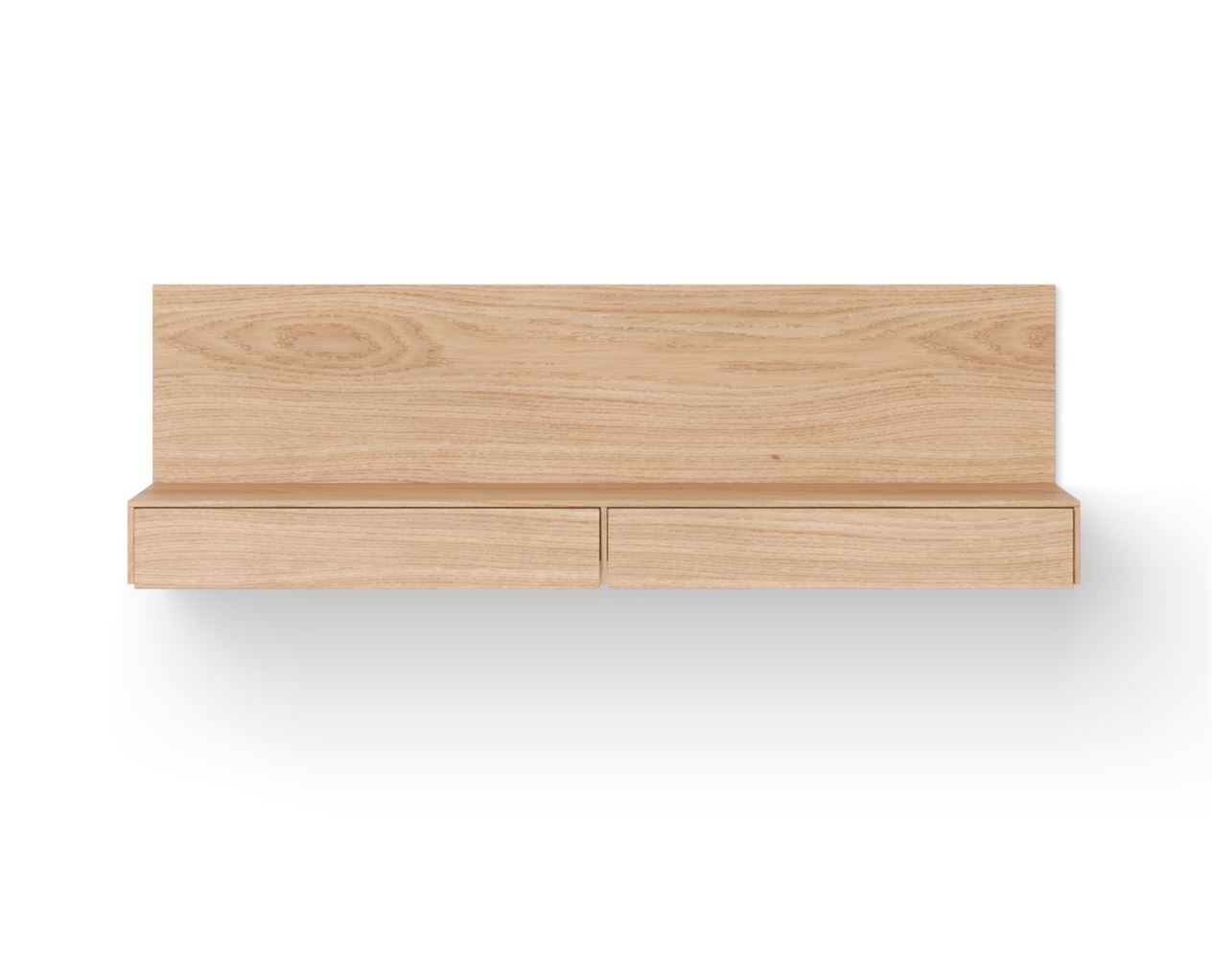 Fint og praktisk væghængt skrivebord fra New Works, designet af Rikke Rützou Arnved i 2023. Brug eksempelvis skufferne til at rumme kontorartikler og hobbyting, som hurtigt og nemt kan findes frem og gemmes væk igen. Som arbejdsplads har skrivebordet en praktisk størrelse, der gør det muligt at integrere i eksempelvis stuen, soveværelset eller hjemmekontoret. Et væghængt skrivebord kan nemt få et rum til at se større ud og samtidigt give mere plads i og med, at skrivebordet ikke tager gulvplads.