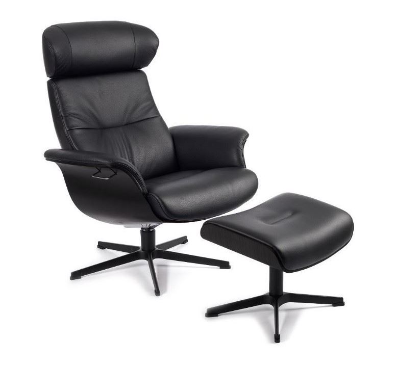 Smuk klassisk lænestol fra Conform. Lænestolen Timeout er en yderst behagelig og komfortabel lænestol der giver dig den bedste siddekomfort med 3-trins justerbar ryg og nakkestøtte. Stolen er fuldpolstret og betrukket med sort kvalitets læder, har en skal af sortbejdset egetræ og en 4-bens drejefod i sort aluminium. Der medfølger en skammel til denne stol i samme kvalitet og materiale. Den justerbare nakkestøtte og skammel gør det muligt at ligge/sidde behageligt og samtidig støtte nakken, så du kan se tv'et i en afslappet position. Timeout stolen gør det muligt, nemt at ændre stilling, så du kan nuppe et kapitel mere i din yndlingsbog i ny stilling - eller forlænge luren på bedste vis.