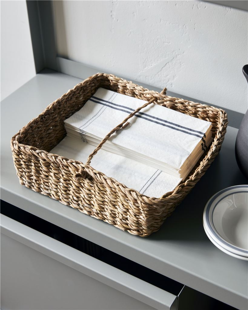 Gør dine papirservietter til en integreret del af din borddækning med Naba servietkurven fra Nicolas Vahé. Denne firkantede kurv er lavet af naturligt søgræs, hvilket giver den et afslappet og stilfuldt udtryk, perfekt til uformelle middage og hyggelige sammenkomster.