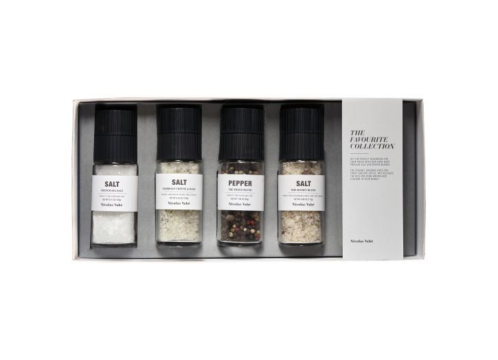 Lækker gaveæske fra Nicolas Vahé. Gaveæsken indeholder Nicolas Vahés fire mest populære salte og pebre, som hjælper dig på vej til at fremtrylle velsmagende måltider derhjemme. Krydderierne giver det sidste strejf til ethvert måltid, og hiver dine retter op på et endnu højere niveau, uanset om det gælder pasta, salat, steaks eller simreretter. Hver salt- og peberblanding har en ny keramisk kværn, som giver dig fint kværnede krydderier. Det medvirker til at frigive olierne i maden, så maden får endnu mere aroma og smag. Giv denne skønne gaveæske som eksempelvis vært/værtindegave eller forkæl dig selv med disse lækre krydderier.