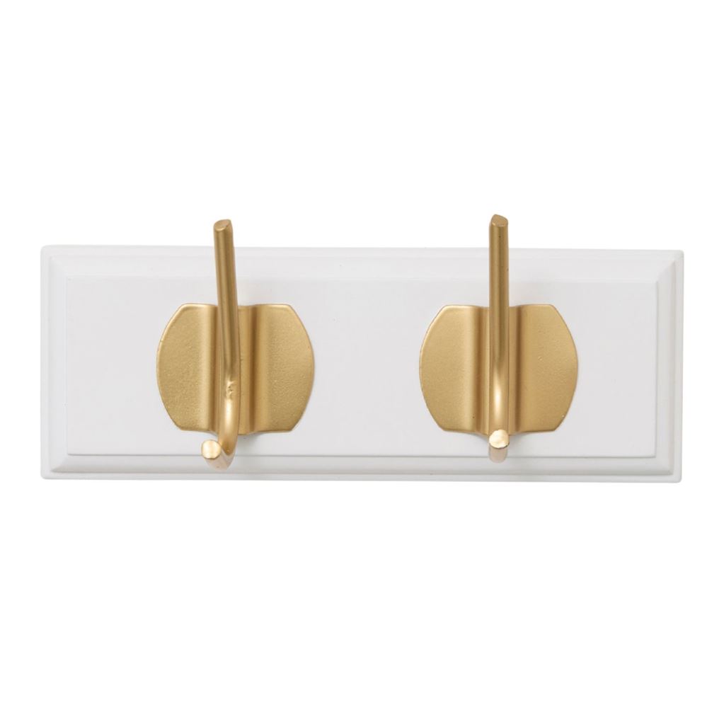 Nordal Edgy Knagerække m. 2 Knager L: 20 cm - Brass/Hvid