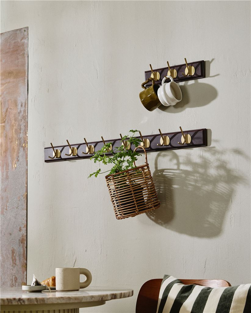 EDGY knagerækken er et elegant og praktisk tilbehør til dit hjem. Fremstillet i træ med tre messingfarvede knager, tilføjer denne knagerække både stil og funkt Se mere ...