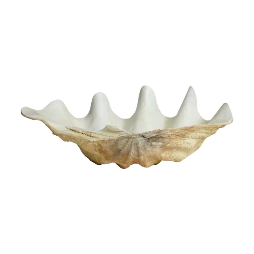 En stor og smuk muslingeskal, der kombinerer elegance og skulpturel skønhed med praktisk anvendelighed til opbevaring. Hver muslingeskal er håndlavet, hvilket gør dem unikke med små variationer i størrelse og udseende. Den naturtro udformning gør den til en imponerende og charmerende dekoration