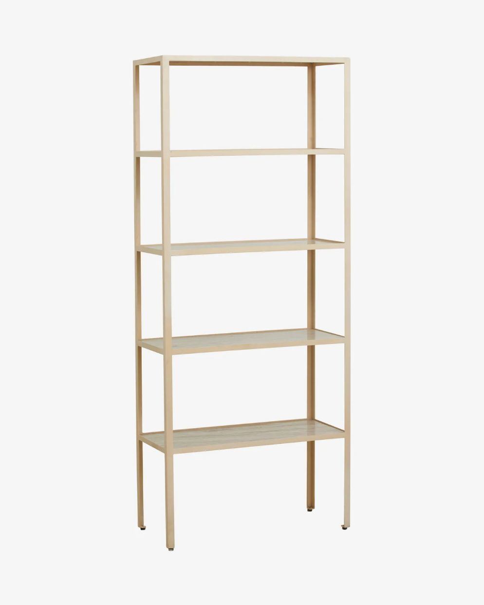 Tidsløs reol JUNGO fra Nordal. Reolen er fremstillet i en sandfarvet jernramme og har elegante marmor plader, som gør hver reol unik. JUNGO reolen kan med fordel kombineres med andre møbler fra samme serie. Reolen har en max. belastning på 5 kilo pr. hylde.