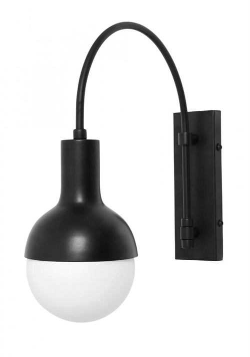 Rigtig flot og enkel væglampe fra Nordal. Lampen er fremstillet i sortlakeret jern og sidder smukt på en buet stang ud fra vægbeslaget.