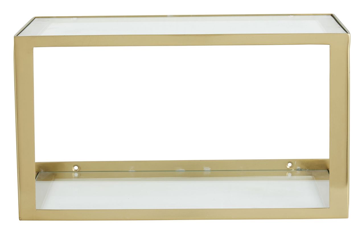Nordal NERA Shelf w/glass 36x20x20,5 cm - GoldenFin lille hylde fra Nordal. Den består af en ramme i metal og hylder af glas. Dette giver hylden et moderne uds Se mere ...