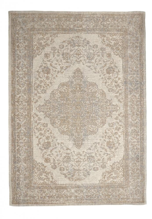 PEARL bomuldstæppe er et smukt og elegant gulvtæppe, der tilføjer et strejf af luksus til dit hjem. Tæppet er designet med et flot orientalsk mønster i lækre, nedtonede sand- og beige nuancer, som skaber en rolig og sofistikeret atmosfære. En diskret blå farve i mønsteret tilføjer en flot detalje og dybde til farvespillet, hvilket gør tæppet endnu mere unikt.