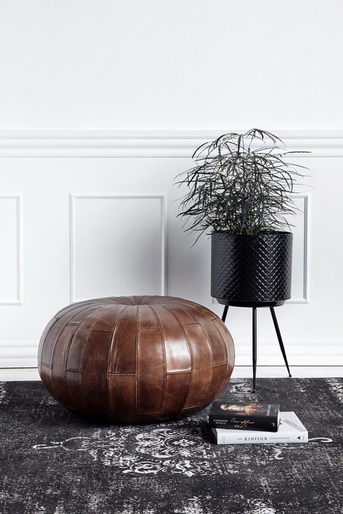 Nordal Rugby Round Leather Pouf Ø: 71 cm - Antique Brown