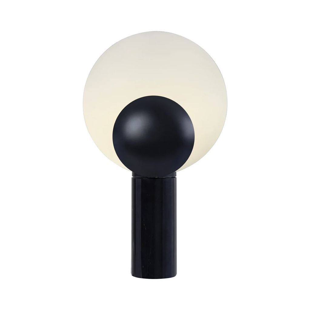 Caché bordlampen fra Design For The People har et spændende design, der fanger øjnene. Charlotte Høncke, som er designeren bag, har skabt det smukke udtryk med to runde skærme, der holdes sammen af en base af marmor. Lyset reflekteres mellem de to skærme og giver en interessant belysning. Marmor er en natursten, derfor vil hver lampebase variere i præcis farve og mønster, og hver base vil være unik.