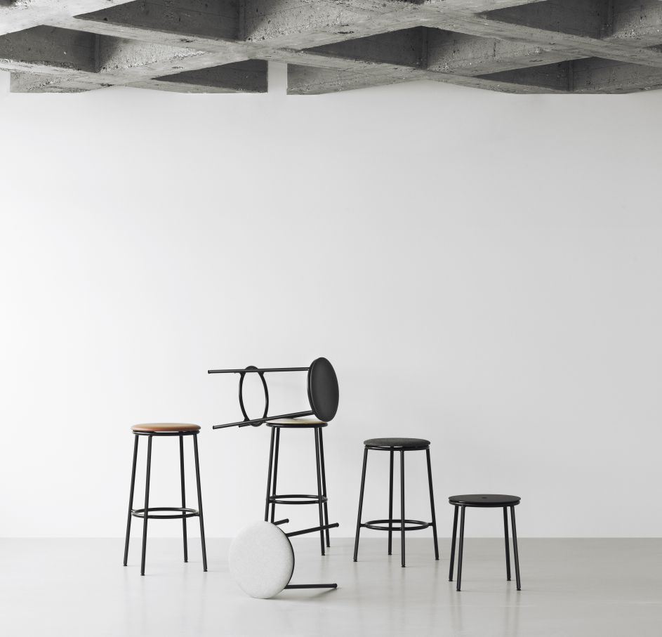 Den skønne Circa serie af Simon Legald fra Normann Copenhagen, er en serie der hylder klassisk minimalisme. Designet er lavet til at kunne holde i flere generationer. De bløde og afrundede kanter på sædet hviler på et robust stel, der udformet i sort pulverlakeret stål. Et gennemgående element i Circa serien er selvfølgelig cirkler. Sædets karakteristiske, cirkulære form gentages i den afrundede fodsætter såvel som det praktiske hul i midten af sædet. Dette gør det muligt let at bære stolen rundt. Grundet gentagelserne i designet har serien et harmonisk og velafbalanceret udtryk. Circa serien skiller sig ud på enkelhed og funktionalitet.