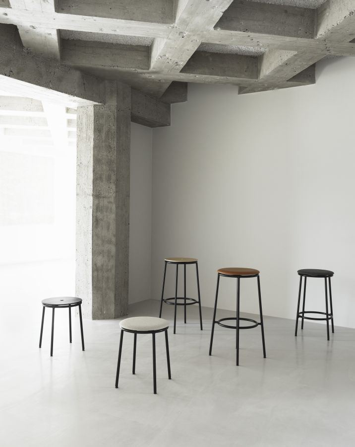 Den skønne Circa serie af Simon Legald fra Normann Copenhagen, er en serie der hylder klassisk minimalisme. Designet er lavet til at kunne holde i flere generationer. De bløde og afrundede kanter på sædet hviler på et robust stel, der udformet i sort pulverlakeret stål. Et gennemgående element i Circa serien er selvfølgelig cirkler. Sædets karakteristiske, cirkulære form gentages i den afrundede fodsætter såvel som det praktiske hul i midten af sædet. Dette gør det muligt let at bære stolen rundt. Grundet gentagelserne i designet har serien et harmonisk og velafbalanceret udtryk. Circa serien skiller sig ud på enkelhed og funktionalitet.