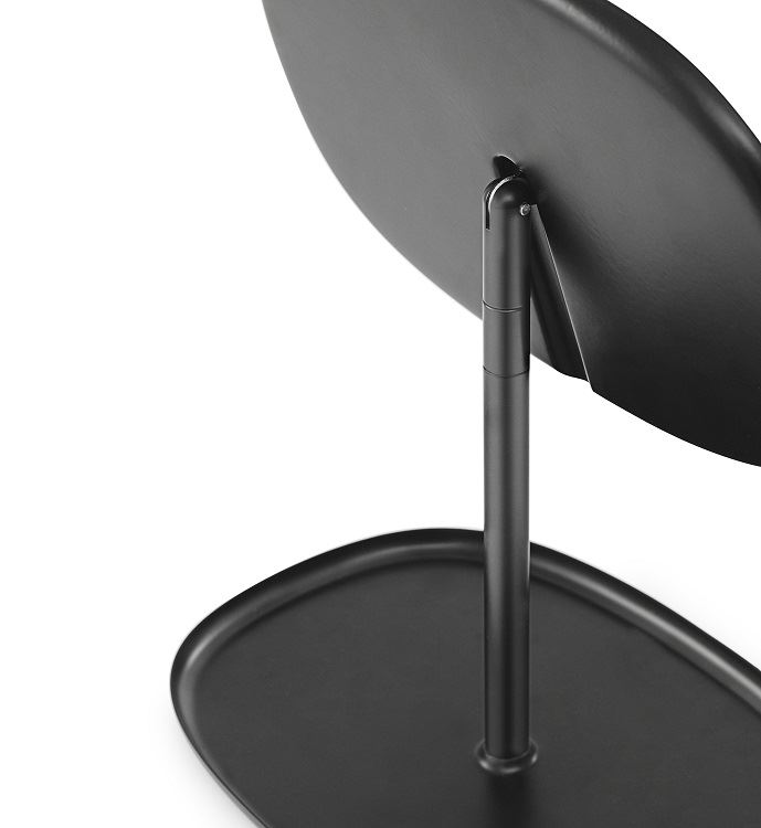 Lækkert fritstående spejl med en lille aflægger tallerken, hvor man eksempeltvis kan have sine smykker liggende. Spejlet kan drejses op, ned og rotere 360 grader.