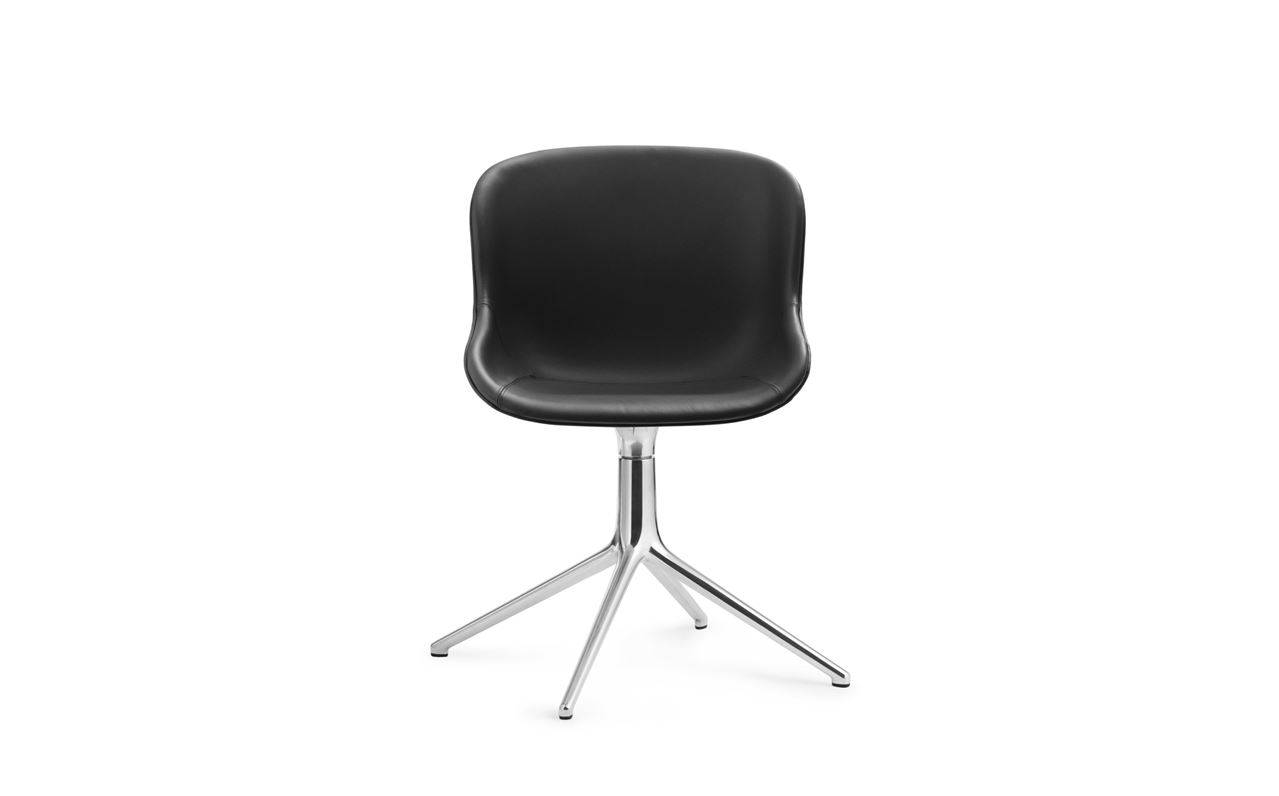 Normann Copenhagen Hyg Drejestol Fuldpolstret - Sort Læder/Aluminium