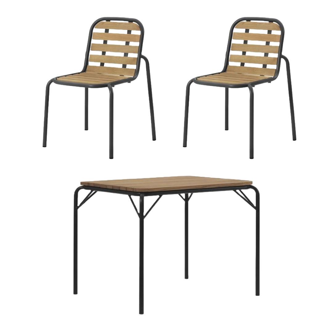 Normann Copenhagen Outdoor Vig Robinie Bord + Vig Robinie Stole Havemøbelsæt - Sort/Olieret træ