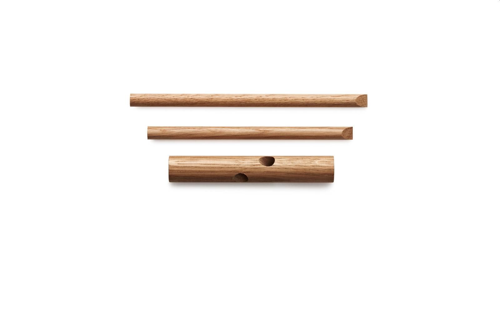 Sticks knagerne fra Normann Copenhagen er et enkelt design i solide materialer. Det er en simpel konstruktion af tre pinde, der tilsammen skaber en meget funktionel og dekorativ knage. Knagerne kan anvendes i køkkenet til viskestykker, i entréen til overtøjet eller i soveværelset til morgenkåber. Den solide egetræ, giver et smukt udtryk på en helt hvid væg, men er også flot på farverige tapeter, hvor de skaber en skøn kontrast.