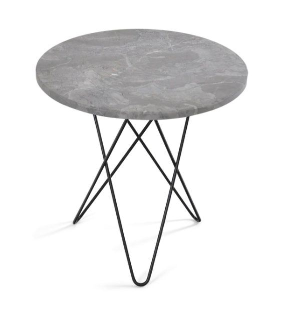 OX Denmarq MINI O Table Ø: 40 cm - Black Powder Coated Steel/Grey Marble