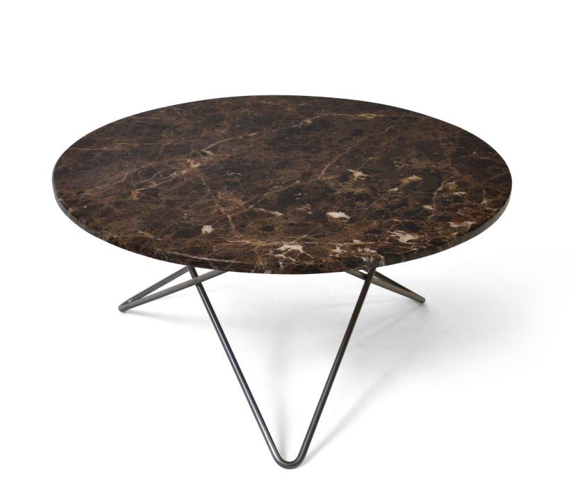 OX Denmarq O Table Sofabord Ø: 80 cm - Black Powder Coated Steel/Brown Emperador Marble