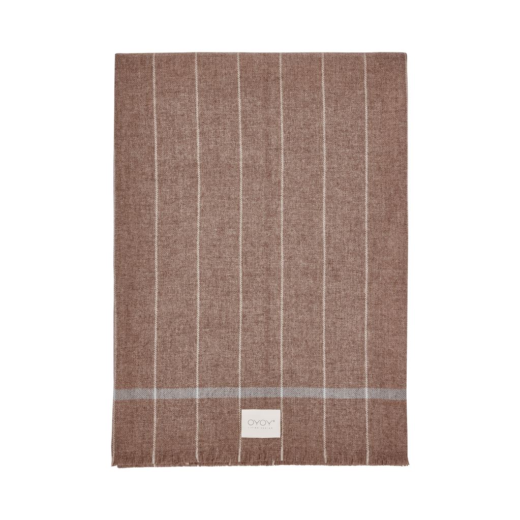 Skønt tæppe fra OYOY Living. Tæppet er produceret i samarbejde med Silkeborg Uldspinderi og kommer i to forskellige farver. Tæppet er utrolig blødt og har du først fået det viklet rundt om dig, vil du ikke slippe det igen. Rejsen fra materiale til tæppe er lang, men sikre herigennem den bedste kvalitet. Det fine tæppe kan sagtens ligge fremme, selvom det ikke er i brug, da det er yderst fint at se på. Placer tæppet i sofaen i stuen, eller på sengen i soveværelset, herigennem kan du også skabe ekstra hygge i det ønskede rum.